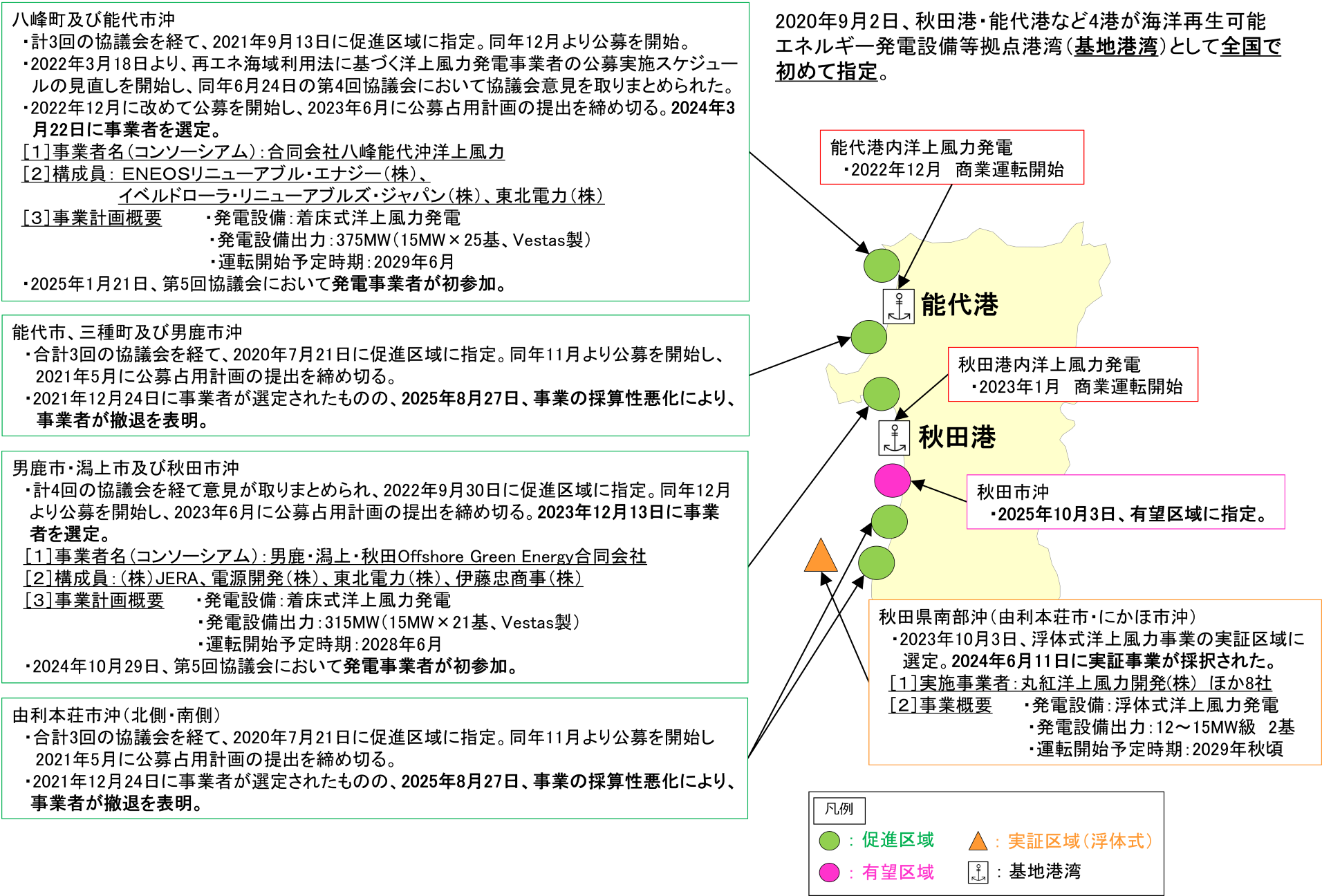 一般海域における洋上風力発電について 更新日:2025年10月6日 一般海域における洋上風力発電について、再エネ海域利用法に基づく促進区域の指定状況等についてお知らせします。 関連リンク 再エネ海域利用法に基づく促進区域を指定し、有望な区域等を整理しました(国土交通省港湾局)(外部サイトにリンクします)