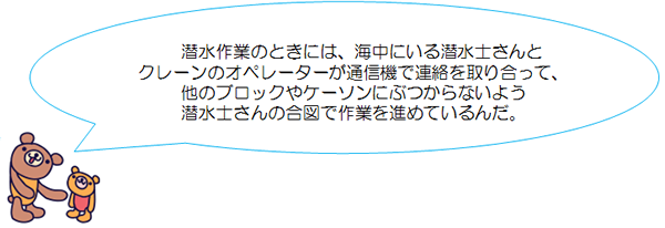 海の中にあって、普段は目にすることのないブロックだけれど、“防波堤の基礎を守る”大切な役割をもっていることが分かったね。