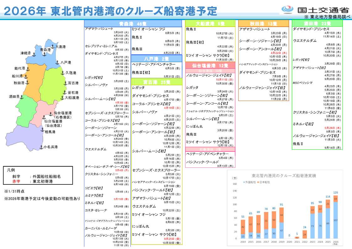 2026年 東北管内港湾のクルーズ船寄港状況